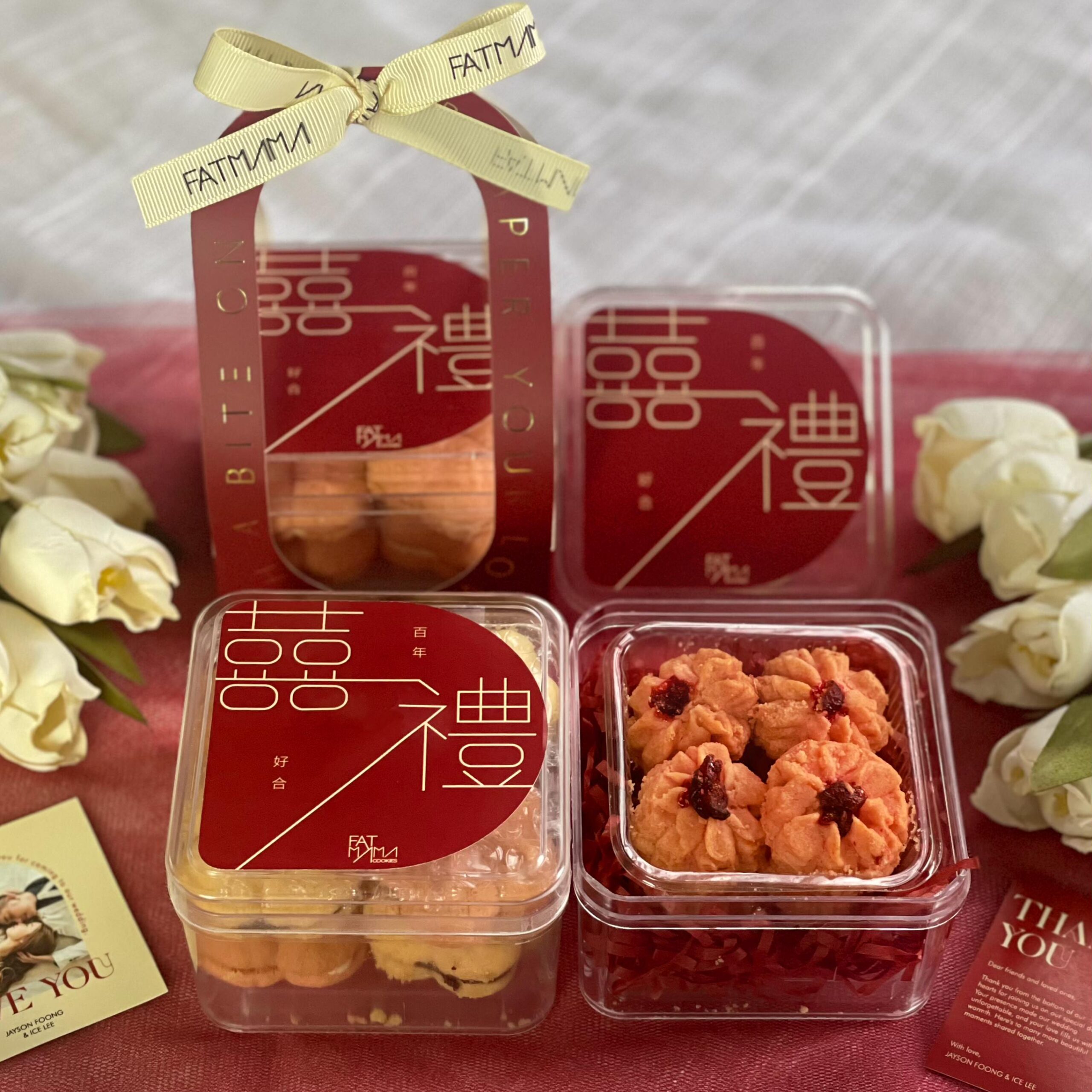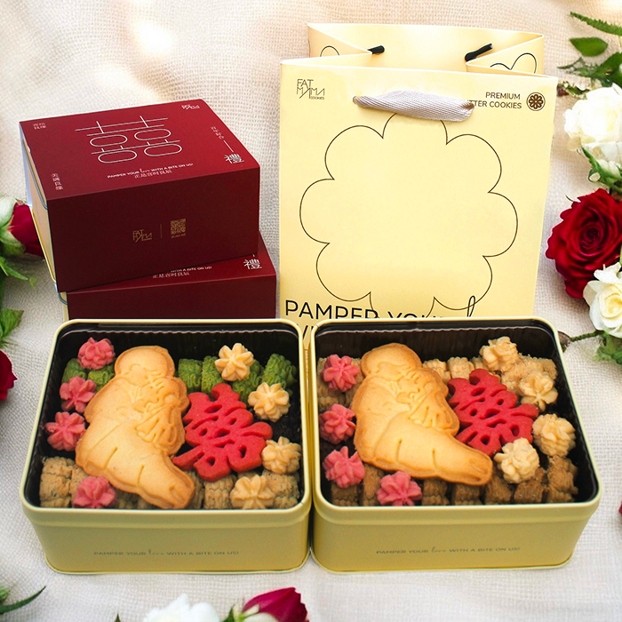 Fatmama Bakery’s signature butter cookies are lovingly handcrafted and sealed in an elegant tin — a thoughtful wedding favour from the couple to their cherished guests.